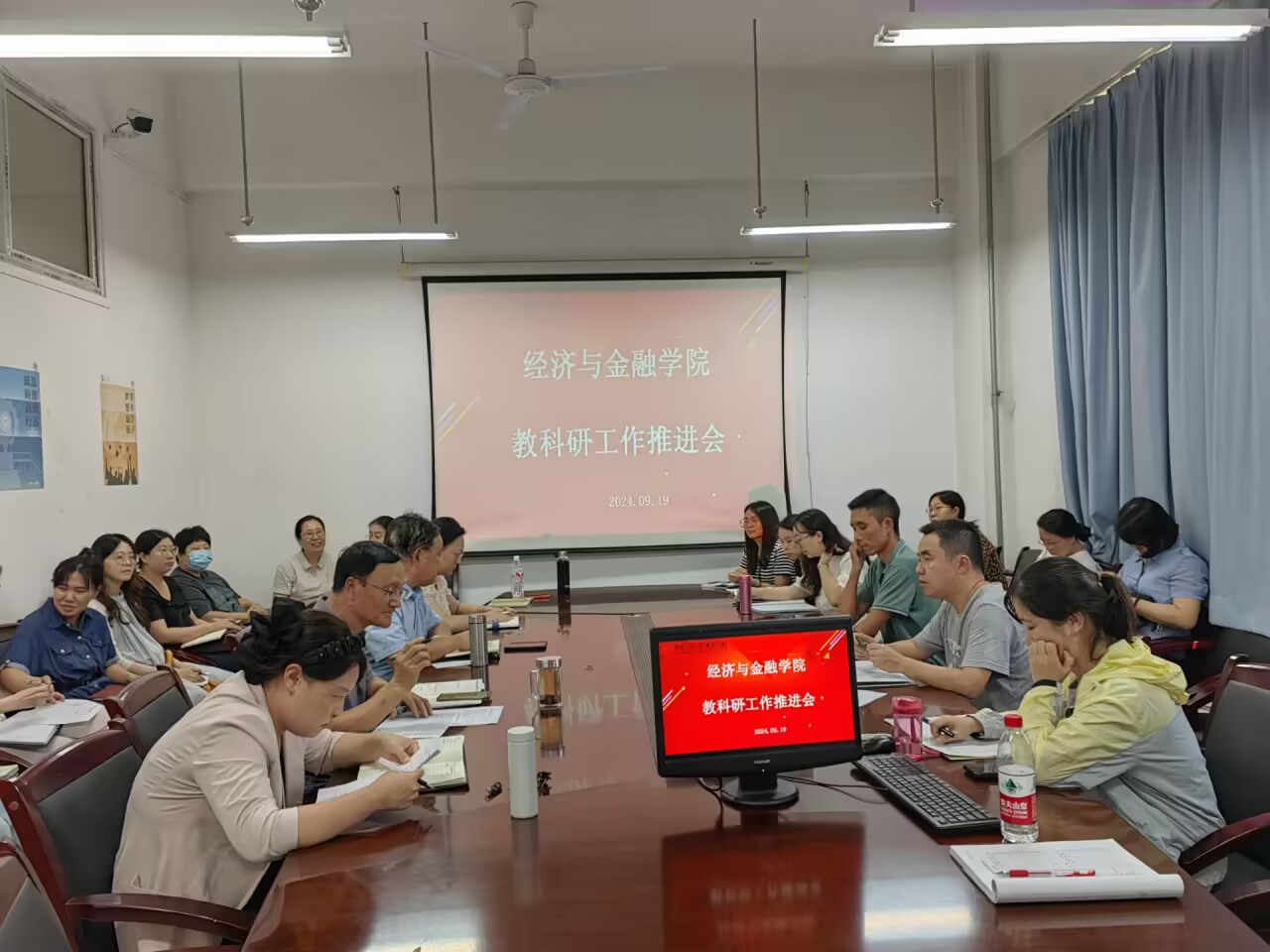 经济与金融学院于9月19日下午在教2-225召开新学期教科研工作推进会。会议由院长张文科主持,副院长杨健全、副院长白丹及全体教职工参加了此次会议。