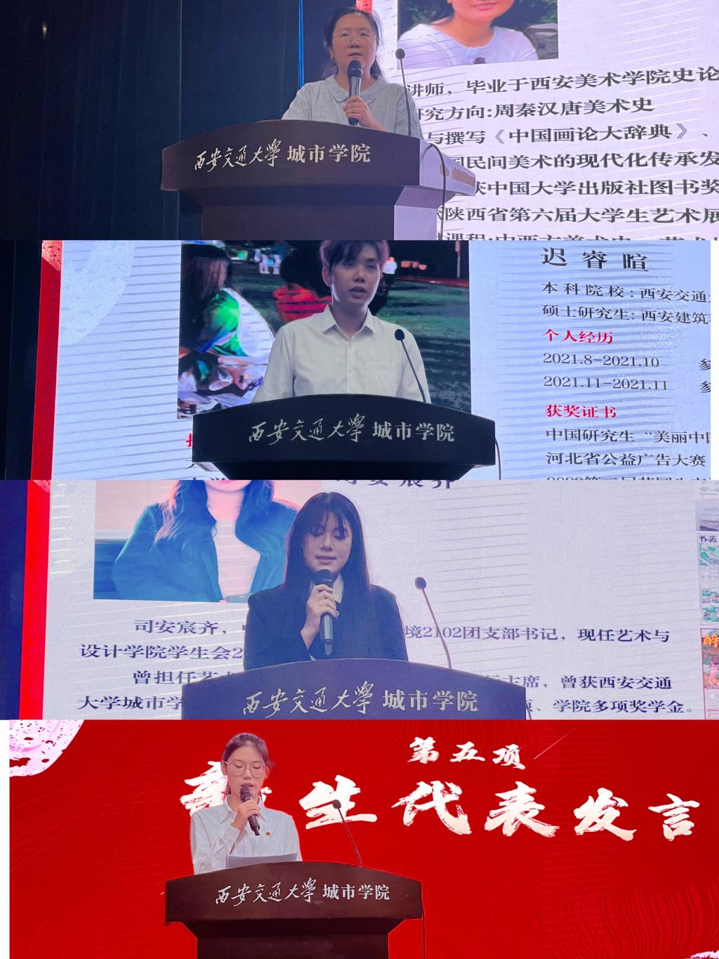 优秀校友迟睿暄与学弟学妹们分享了自己考研道路中从迷茫到坚定信念的过程。他表示,自己始终做答卷者,始终是赶考人。优秀学生代表司安宸齐分享自己三年多的学习、工作、参赛获奖经历。他希望学弟学妹们砥砺奋进正当时,去做“不待扬鞭自奋蹄”的骄傲少年。新生代表王璟瑗表示,自己将在大学期间认真学习,塑造正确人生观、价值观并祝愿各位同学都能在大学生活中绽放出独属于自己的光彩。优秀教师代表王媛从理论课学习、考研复习、获奖参赛视角等全面分析,引导同学们学会怎么高效学习、系统成长。她号召全体师生行动起来,在加强优良学风建设中做到知行合一,从点滴做起,以实际行动立鸿鹄志,做新时代奋斗者!
