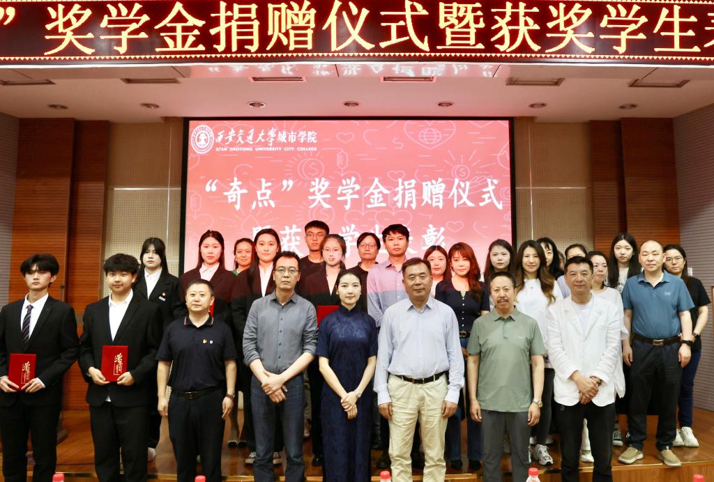 5月29日下午,“奇点”奖学金捐赠仪式暨获奖学生表彰大会在教学楼F100报告厅举行。陕西奇点品牌策划有限公司、明见万里品牌和学子制品牌联合创始人罗芬、叶仲楠、文化顾问吕越涛,yl6809永利官网校长陈光德、艺术与设计学院院长解安宁、学生工作处处长兼教育基金会秘书长辛红伟出席仪式。教育基金会工作人员及艺术与设计学院师生代表参加仪式。仪式由学生工作处副处长吴昊翔主持。